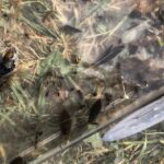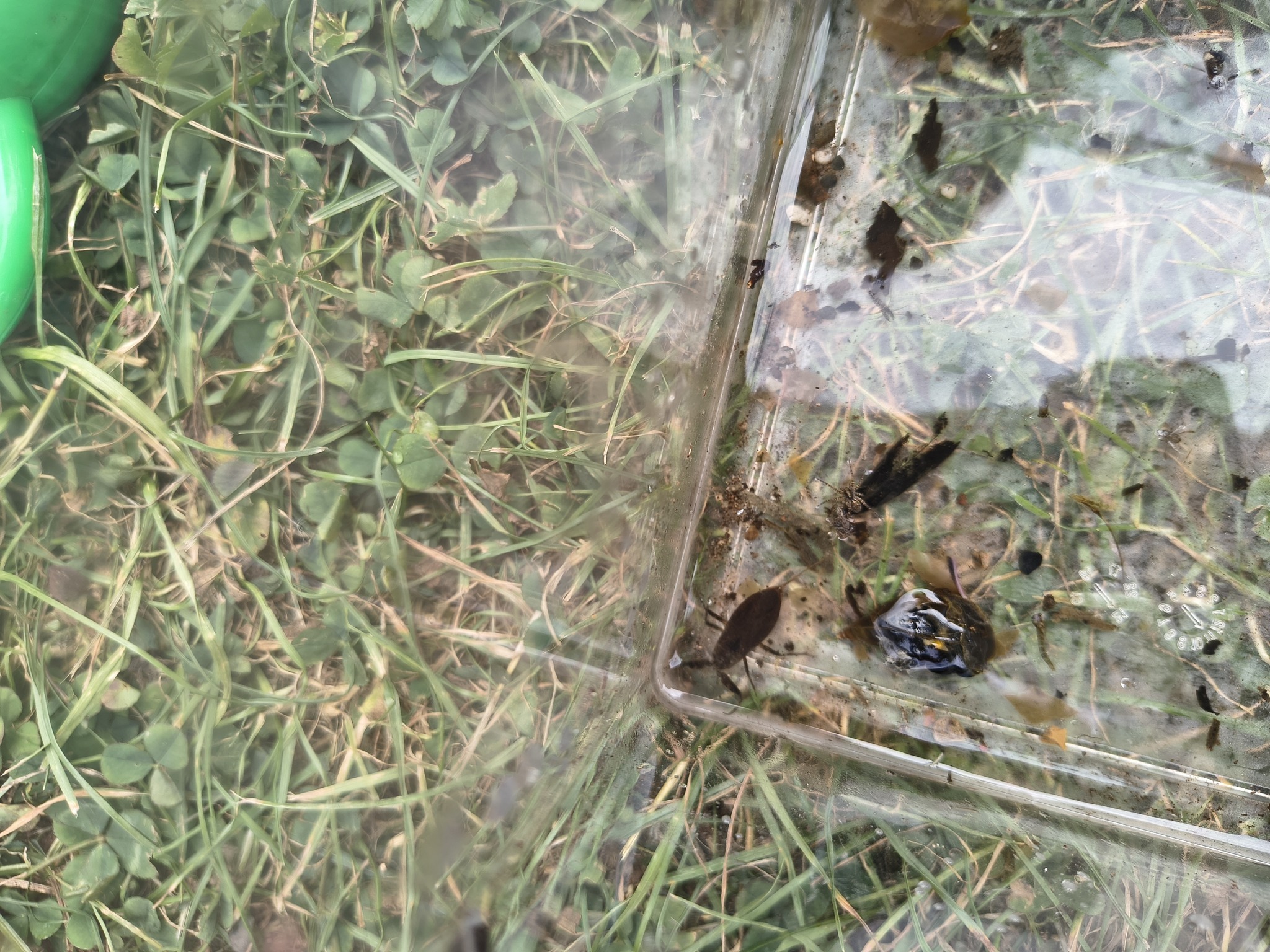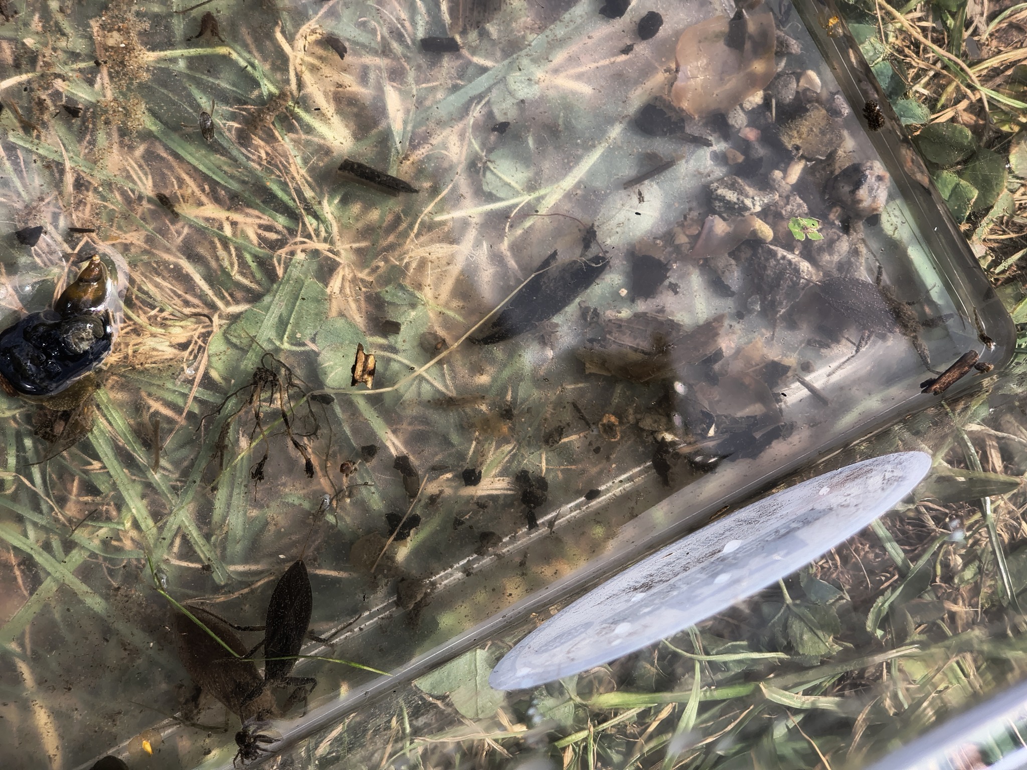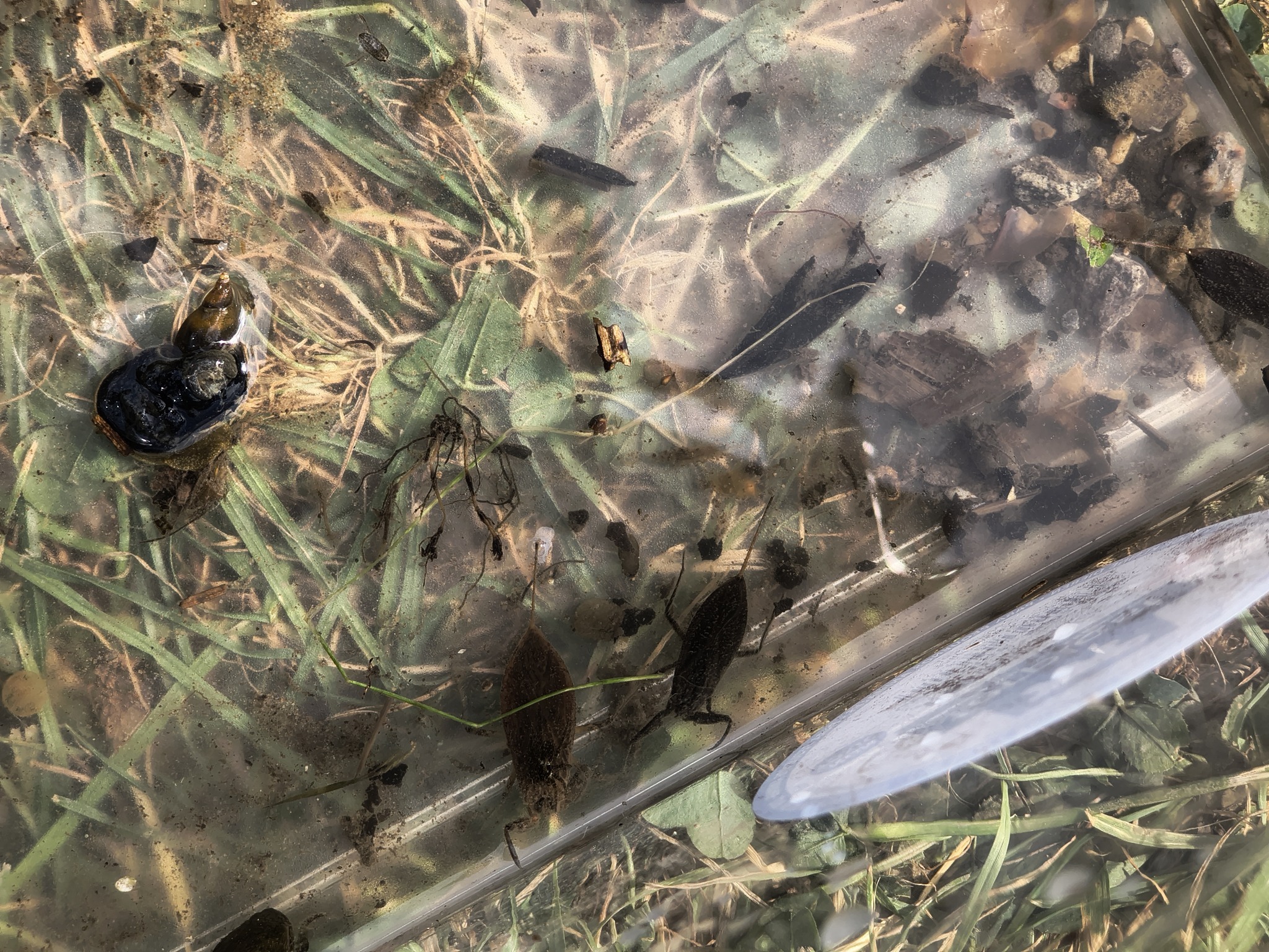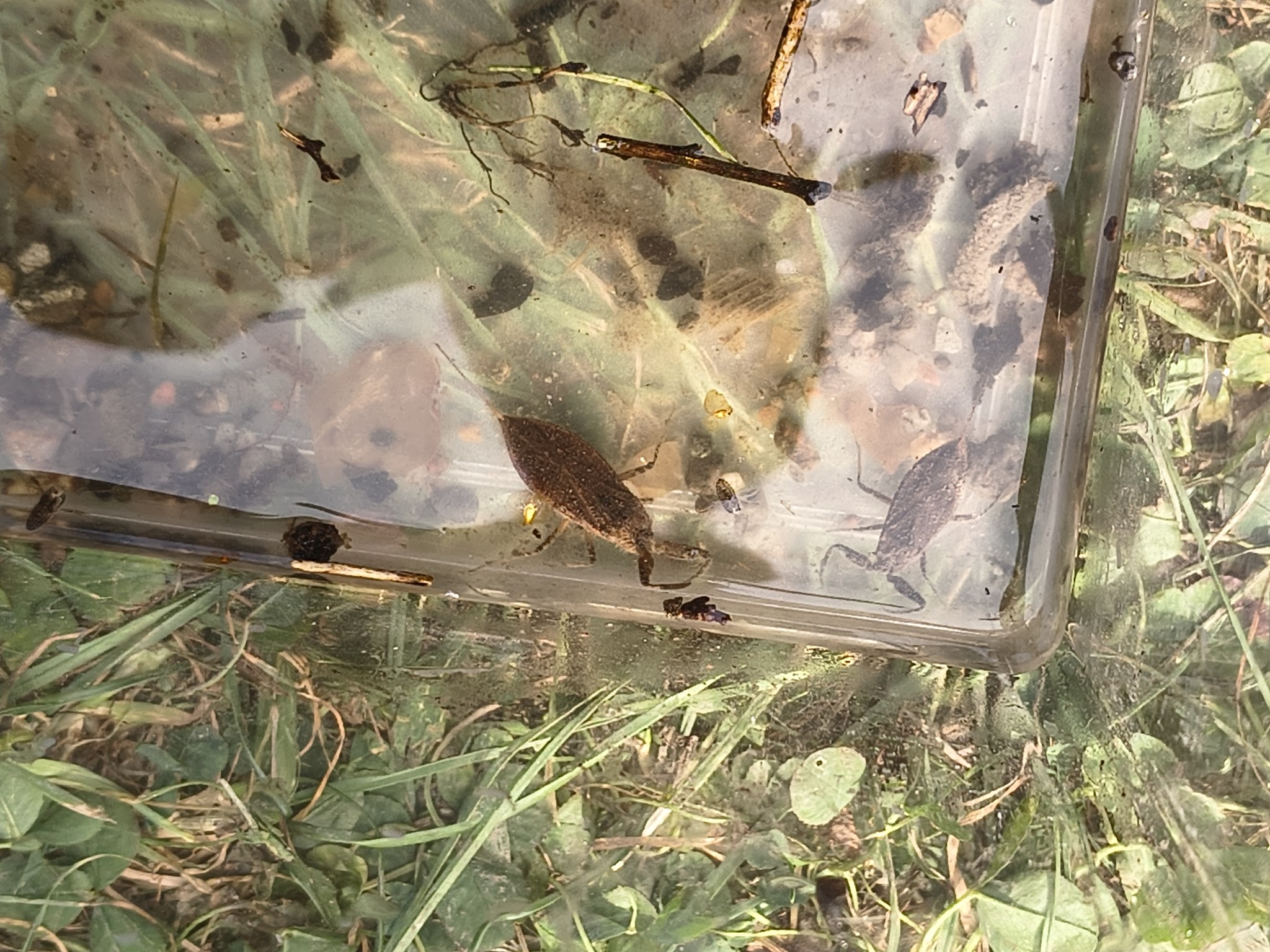Det viste sig, at der ikke var så meget liv, men de fleste fiskenet fik alligevel hevet nogle energiske smådyr ind: skorpiontæger, rygsvømmere og nymfer. Vi fangede også en fisk, som desværre havde været død i noget tid, så den røg ud igen.
