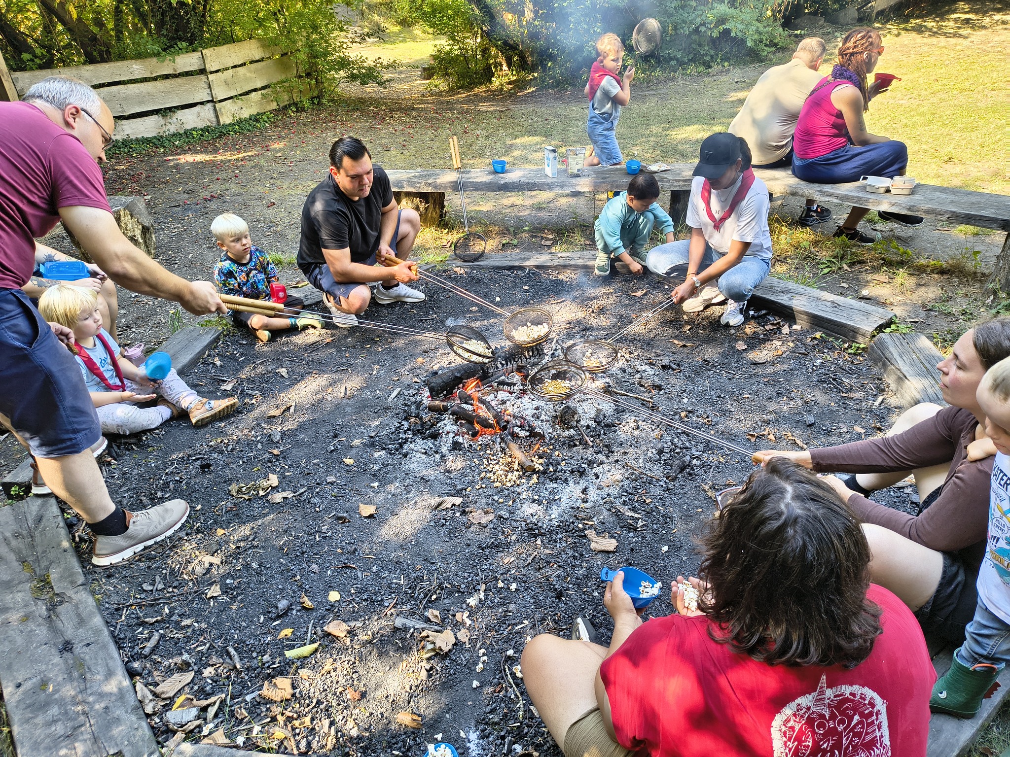 En stor tak til alle for en hyggelig dag, som vi sluttede af med popcorn over bål.