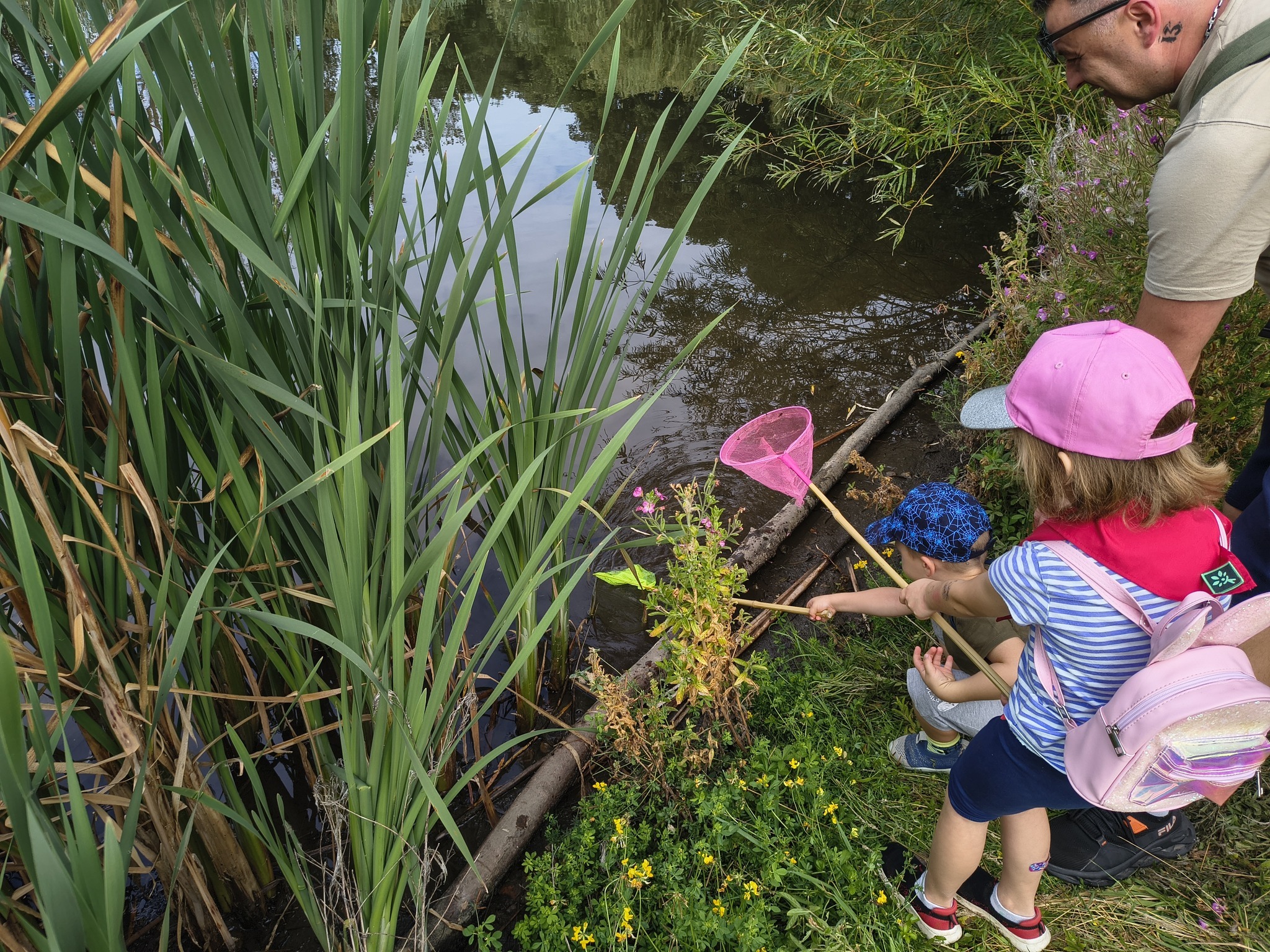 Så var det tid til fisketur i den lokale sø, og vores familiespejdere var klar på det meste – også på at udforske, hvad der kunne gemme sig i søens vand.